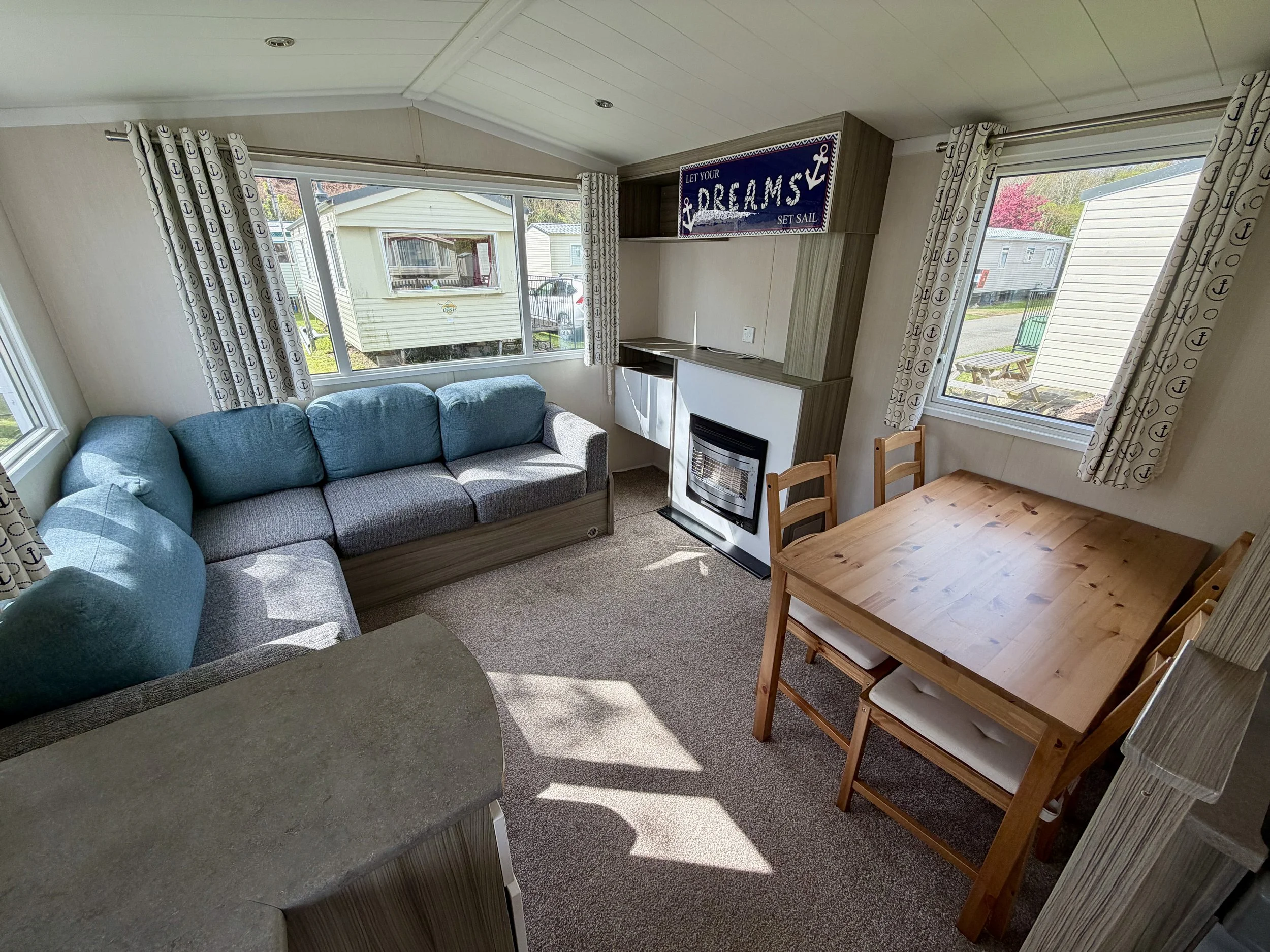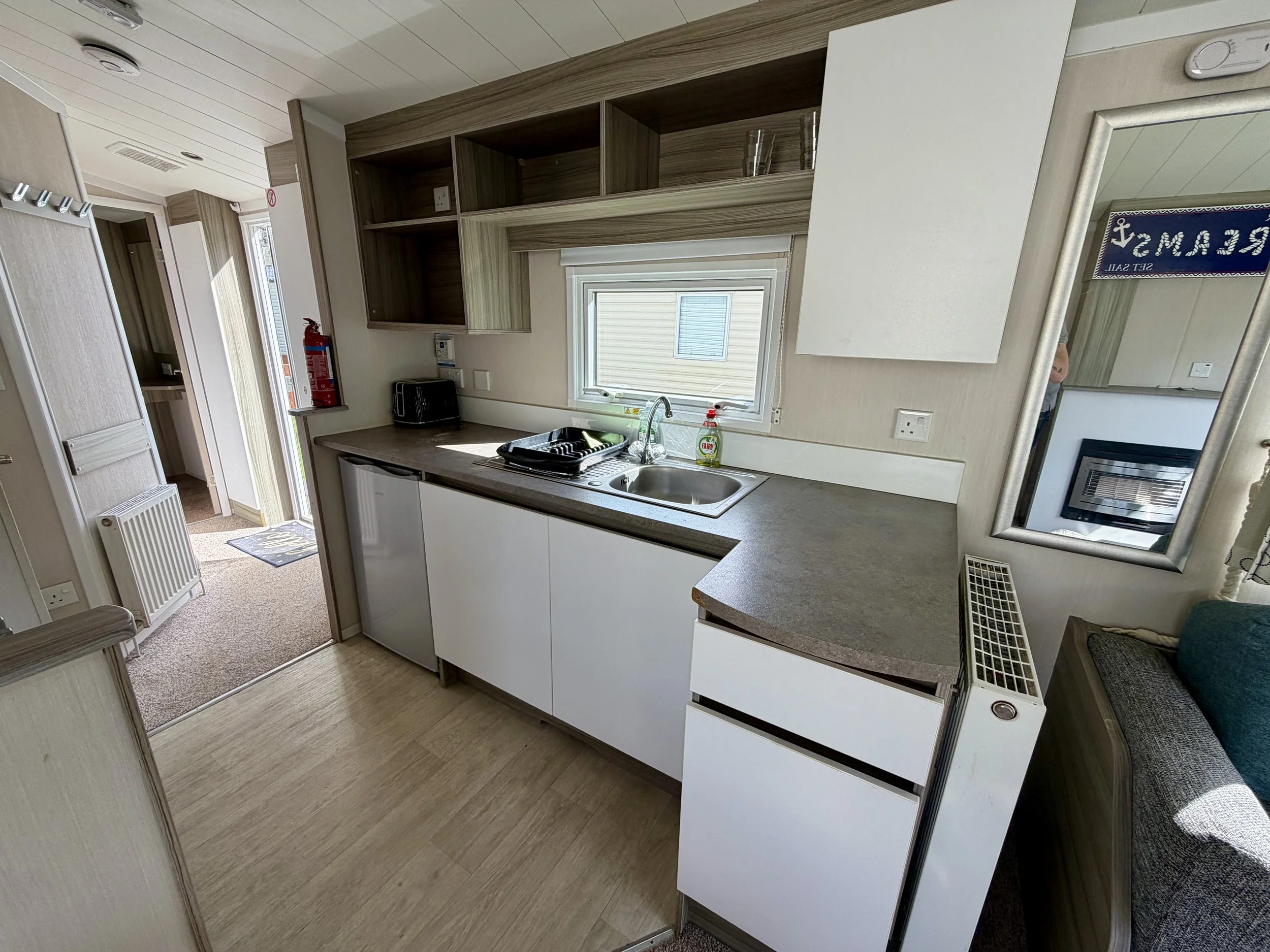 The 2015 Swift Soleil, 28×10ft, offers a perfect balance of space, comfort, and modern style. Situated on a road-side plot within the park, it’s ideally located for convenience and relaxation. With double glazing and central heating, this holiday home provides year-round comfort, making it a cozy retreat in any season. Well-designed and inviting, the Soleil is an excellent choice for those seeking a practical yet stylish getaway.